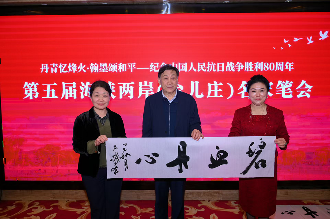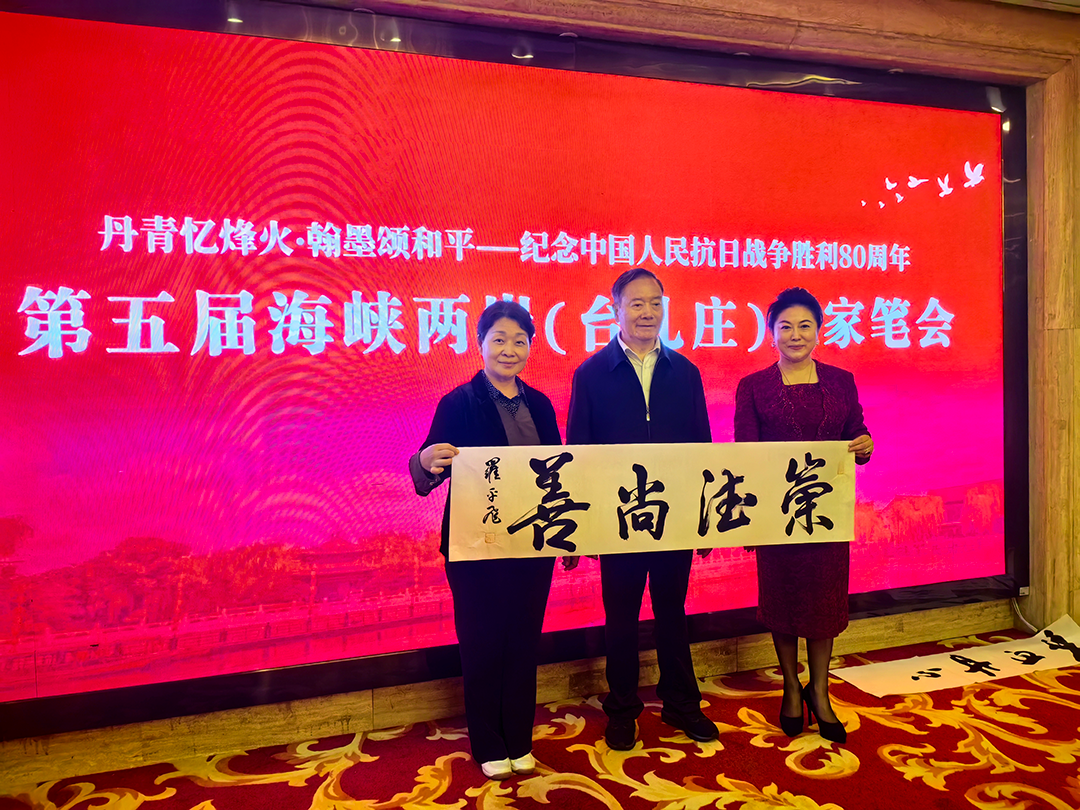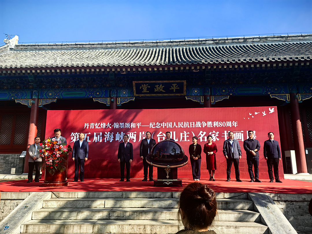 2025 年 10 月 14 日,郝金玲女士受邀参加主题为“丹青忆烽 火翰墨颂和平 —— 纪念中国人民抗日战争胜利 80 周年” 第五届海峡两岸(台儿庄)名家书画展。本次盛会在英雄之城台儿庄盛大举行。开幕式由李军主持,海峡两岸重量级嘉宾齐聚一堂,共同见证这场兼具文化厚度与情感温度的两岸交流盛事。