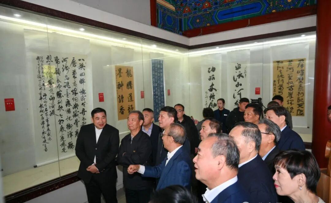 致辞结束,徐政佑先生、郝金玲女士、陈永生先生共同移步启动球前,为书画展正式拉开帷幕。
